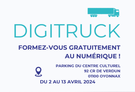 Du mardi 2 au samedi 13 avril, le Digitruck s’installe à Oyonnax : rendez-vous sur le parking du Centre Culturel Aragon pour améliorer vos compétences numériques !