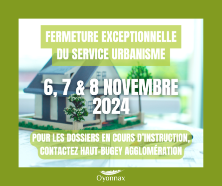 Le Service Urbanisme de la Ville d’Oyonnax sera fermé les 6, 7 et 8 novembre 2024