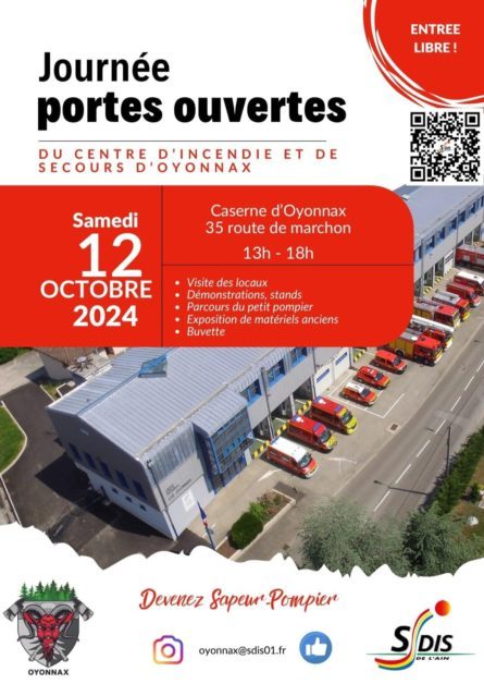 Samedi 12 octobre, le Centre d’Incendie et de Secours d’Oyonnax vous ouvre ses portes pour une journée unique placée sous le signe de la découverte et de l’échange.
